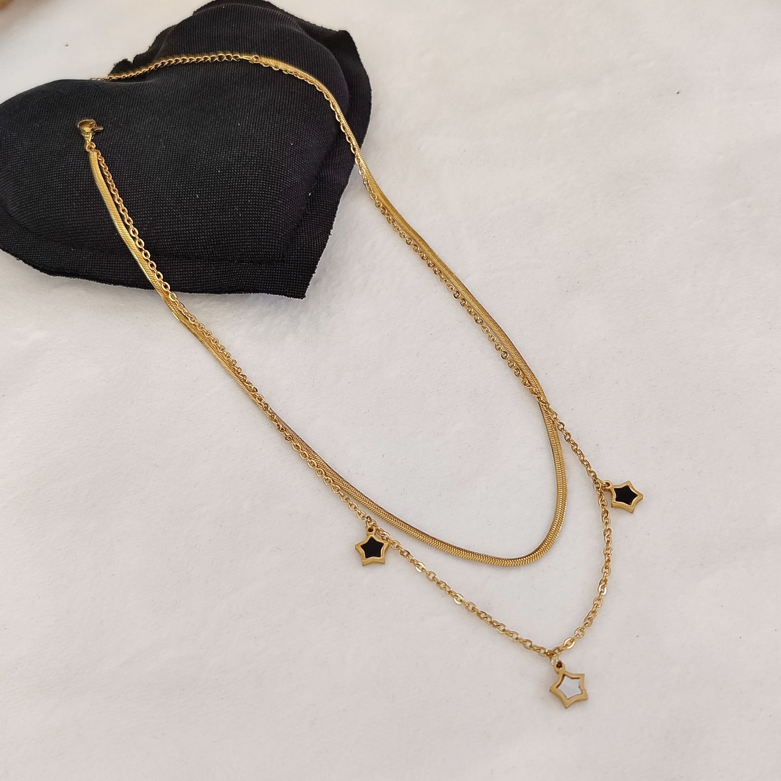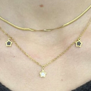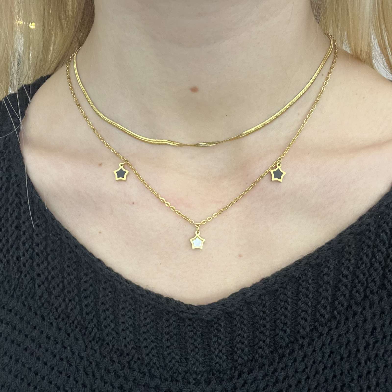 Η διπλή ατσάλινη αλυσίδα φίδι με αστέρια σε χρυσή απόχρωση αποτελεί ένα εντυπωσιακό αξεσουάρ που αναδεικνύει κάθε εμφάνιση.