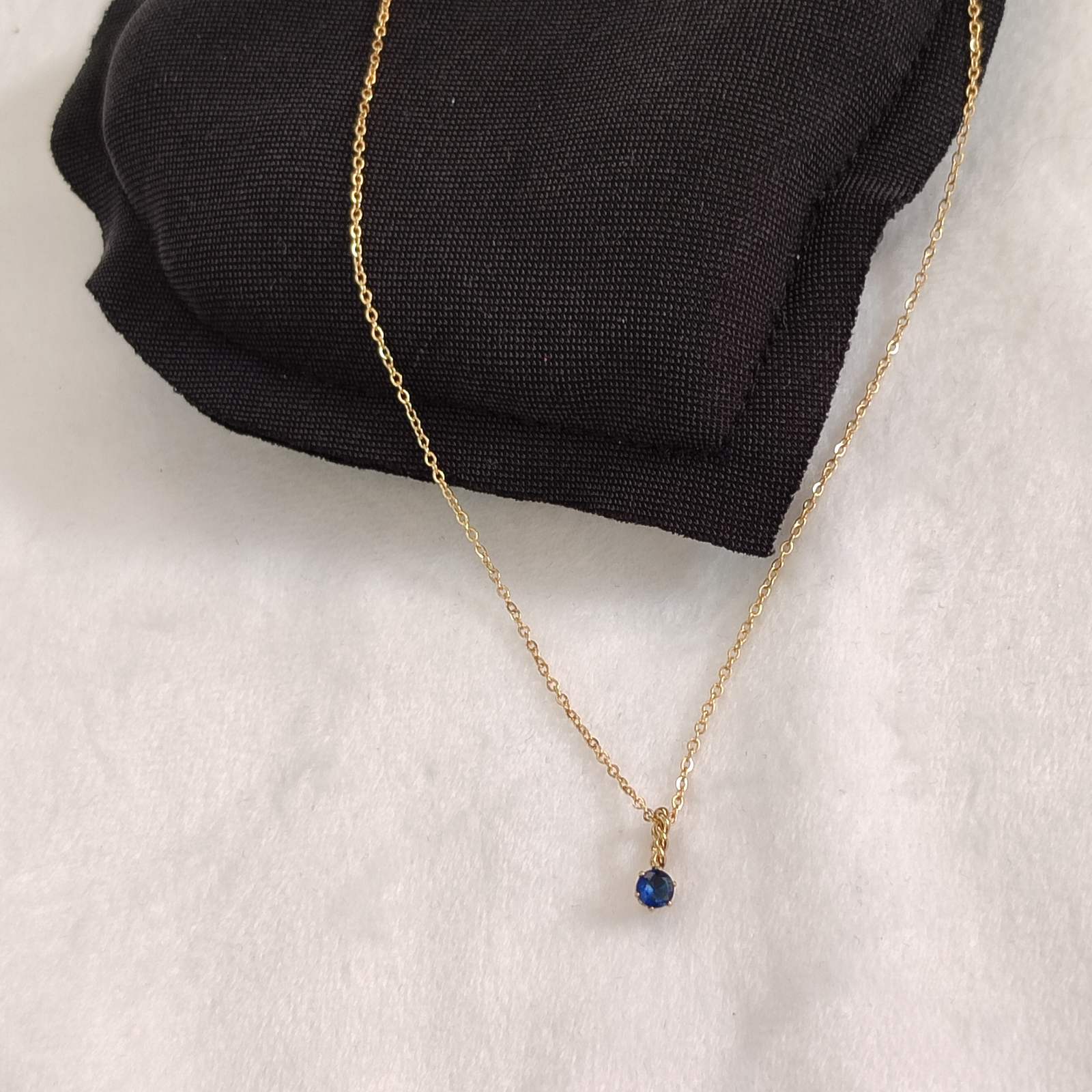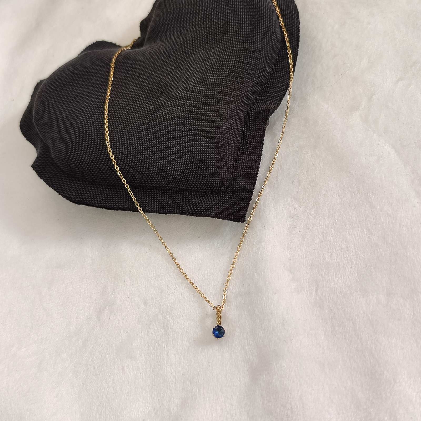Αναδείξτε το στυλ σας με αυτήν την κομψή ατσάλινη αλυσίδα σε χρυσή απόχρωση με μπλέ πέτρα.