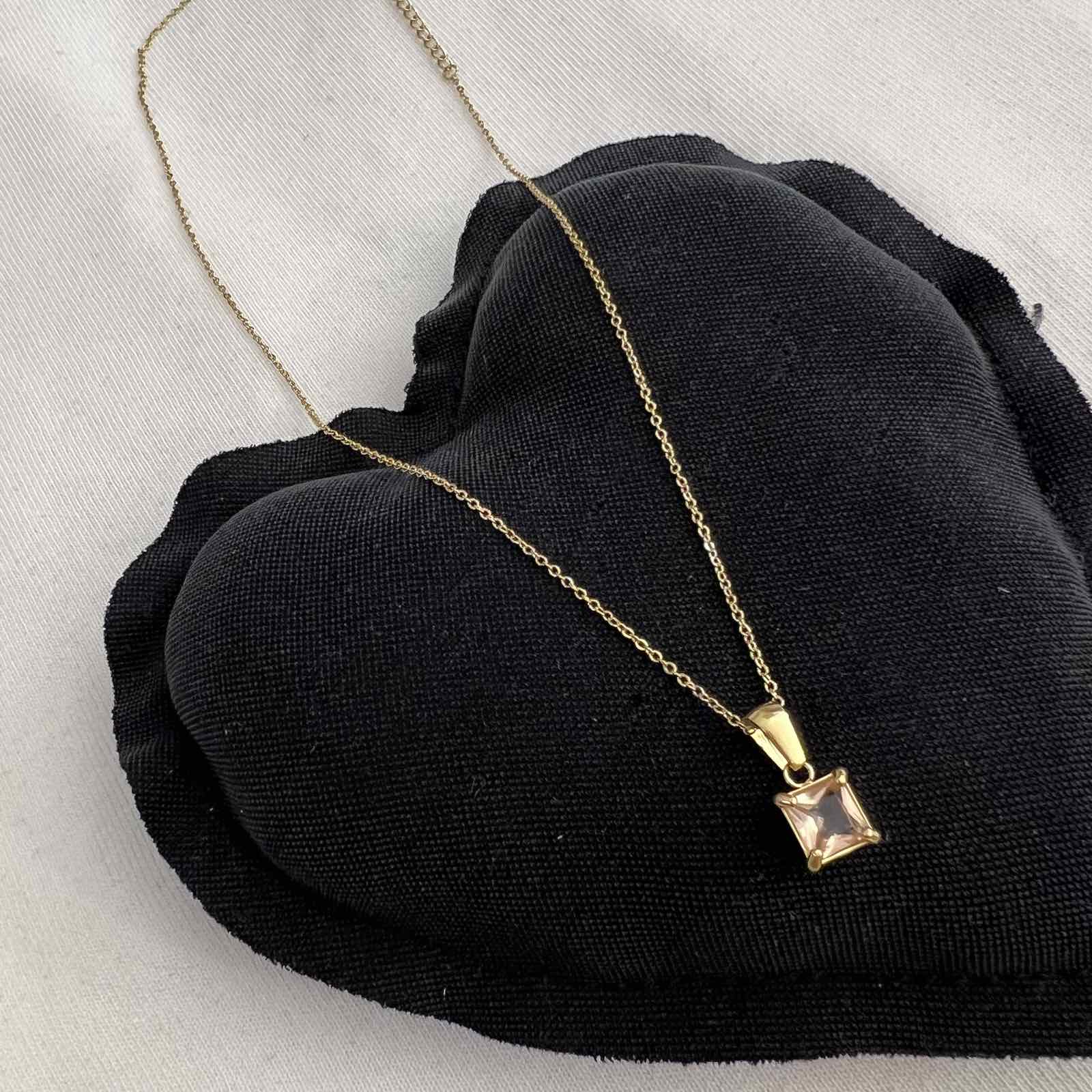 Αναδεικνύουμε τη θηλυκότητα και τη φινέτσα σας με αυτή την ατσάλινη αλυσίδα με κρεμαστή ροζ πέτρα σε χρυσή απόχρωση.