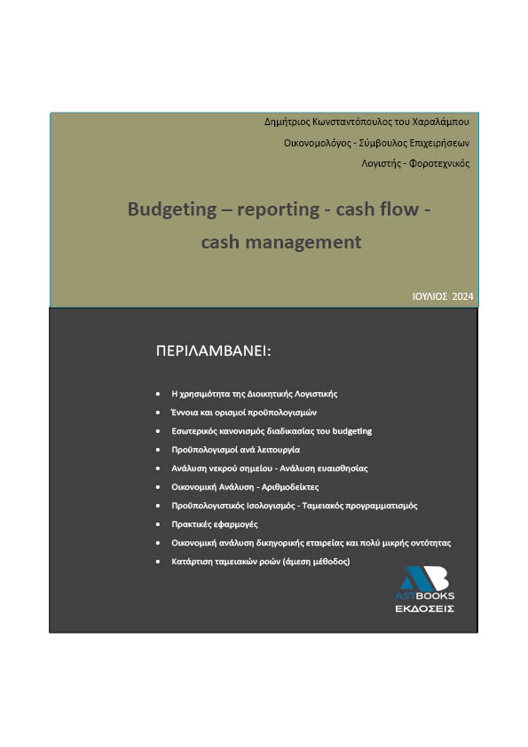 Η έκδοση του του βιβλίου «Budgeting – reporting – cash flow – cash management» από τις εκδόσεις Astbooks είχε στόχο να καλύψει πιο ολοκληρωμένα τις ανάγκες του λογιστή μιας σύγχρονης οντότητας, σε θέματα οικονομικής ανάλυσης και διοικητικής λογιστικής σε συνδυασμό με την έκδοση σχετικά με τη «Σύγχρονη Κοστολόγηση και ΕΛΠ».