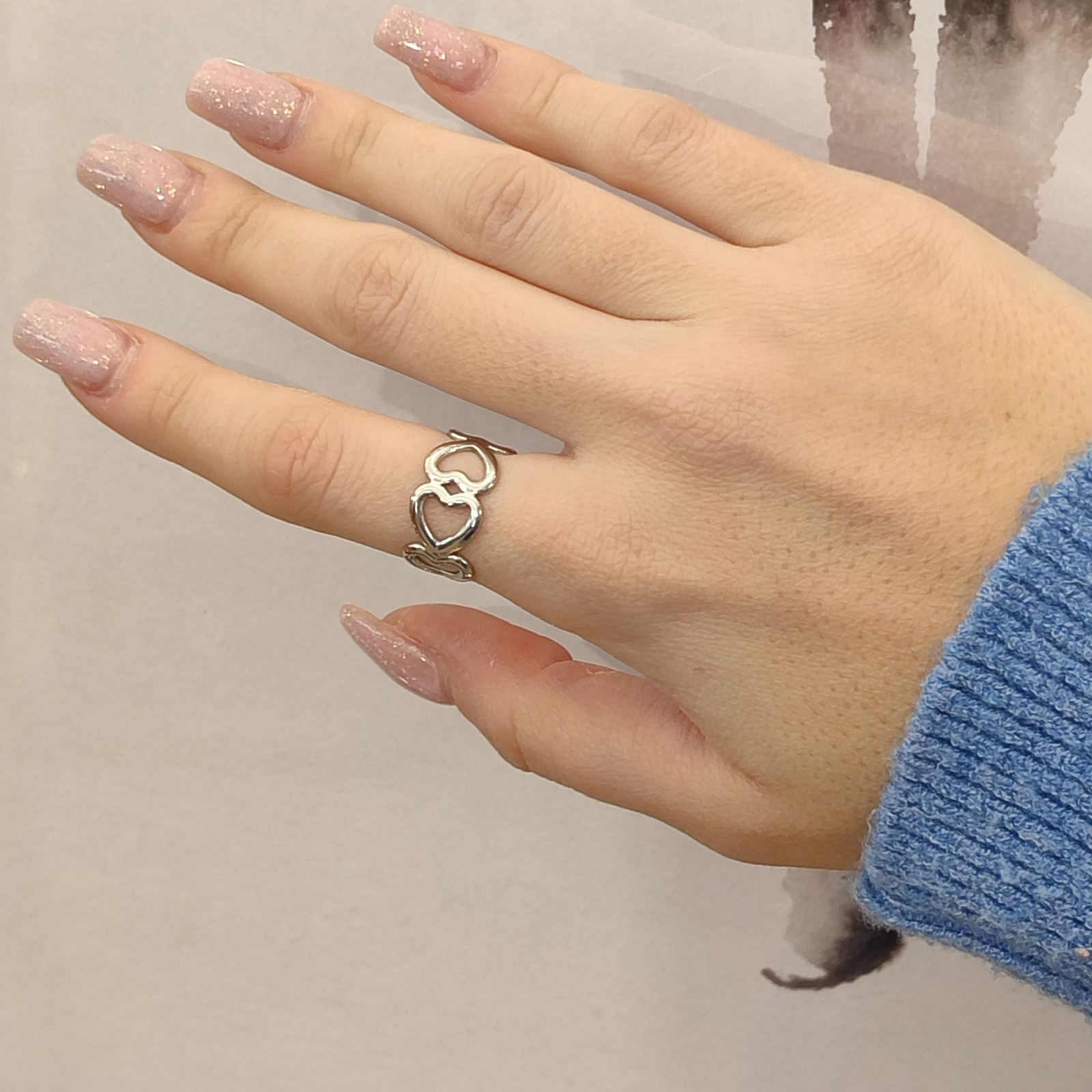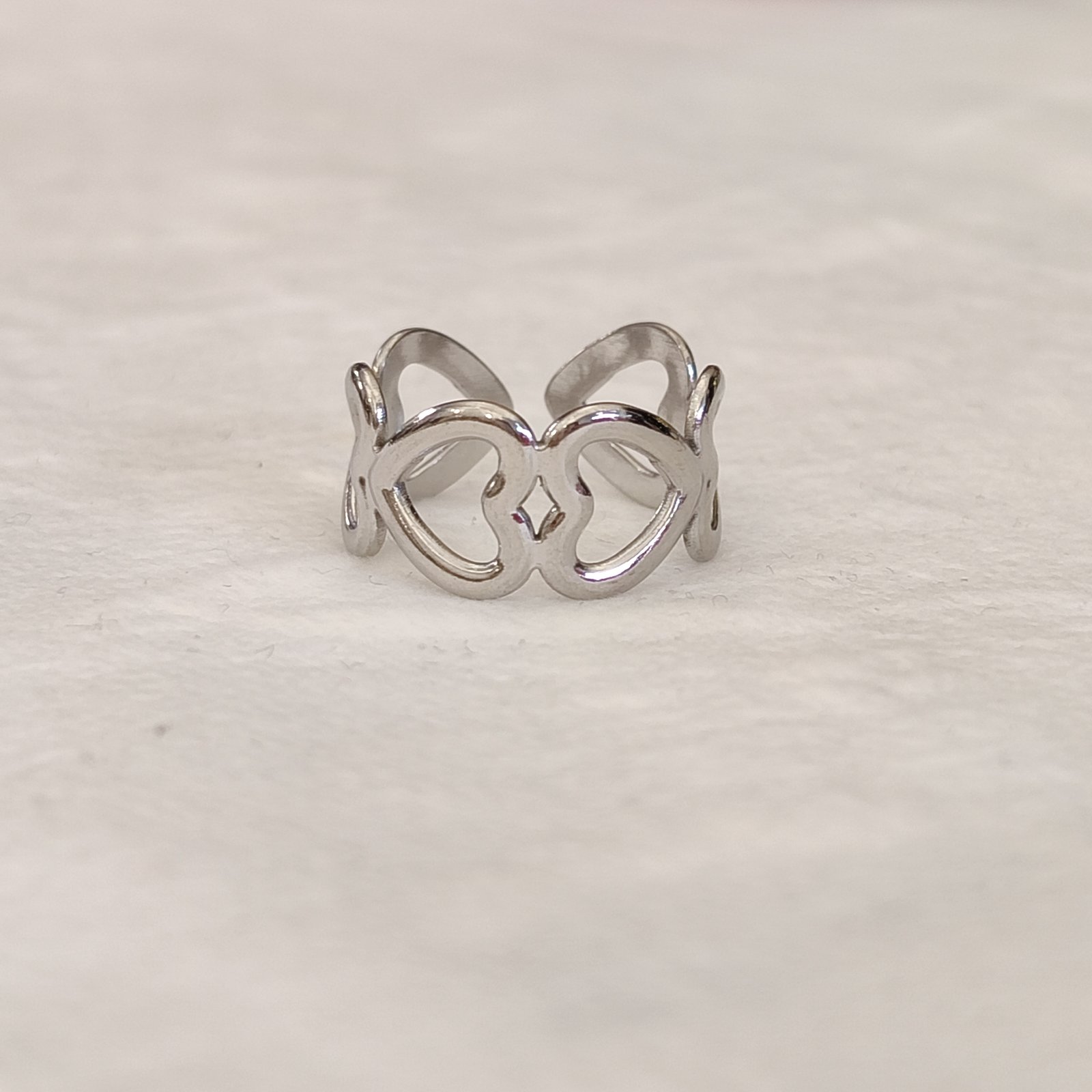 Ατσάλινο δαχτυλίδι σχέδιο καρδιές σε ασημί απόχρωση.