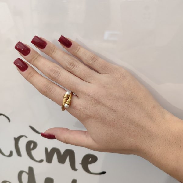 Ατσάλινο δαχτυλίδι με πέρλα σε χρυσή απόχρωση.