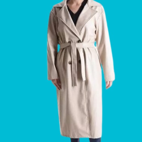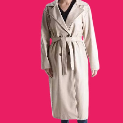 Γυναικεία καπαρντίνα δερματίνη one size με κουμπιά & αποσπώμενη ζώνη.