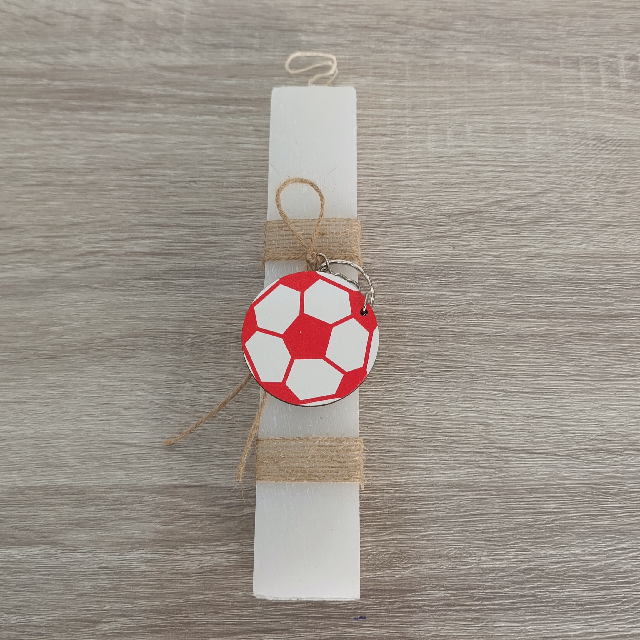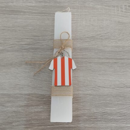 λαμπάδα ανδρική αρωματική λευκή με μπρελόκ ξύλινο ολυμπιακός