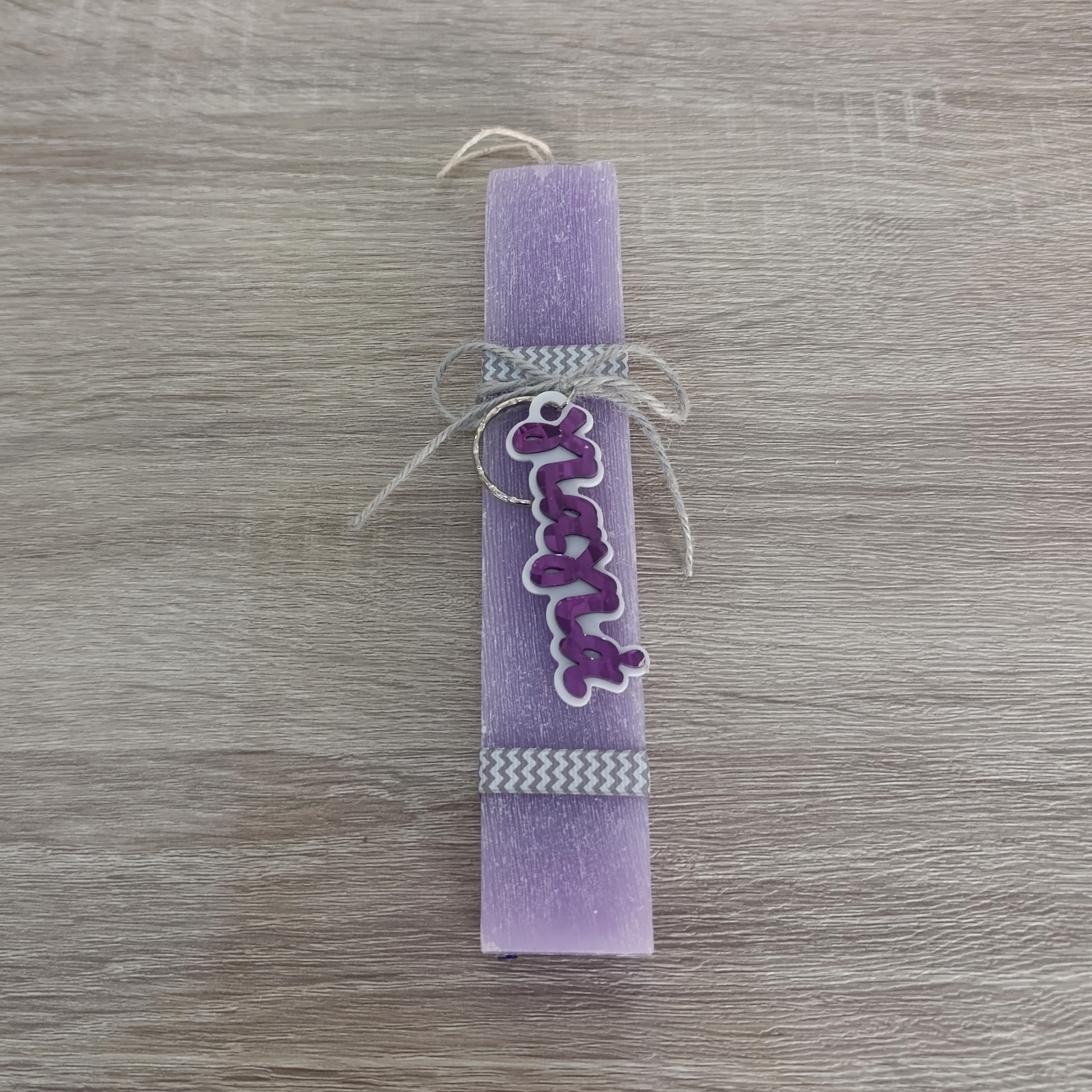 λαμπάδα γυναικεία αρωματική λιλά με διακοσμητικό μπρελόκ plexi γιαγιά