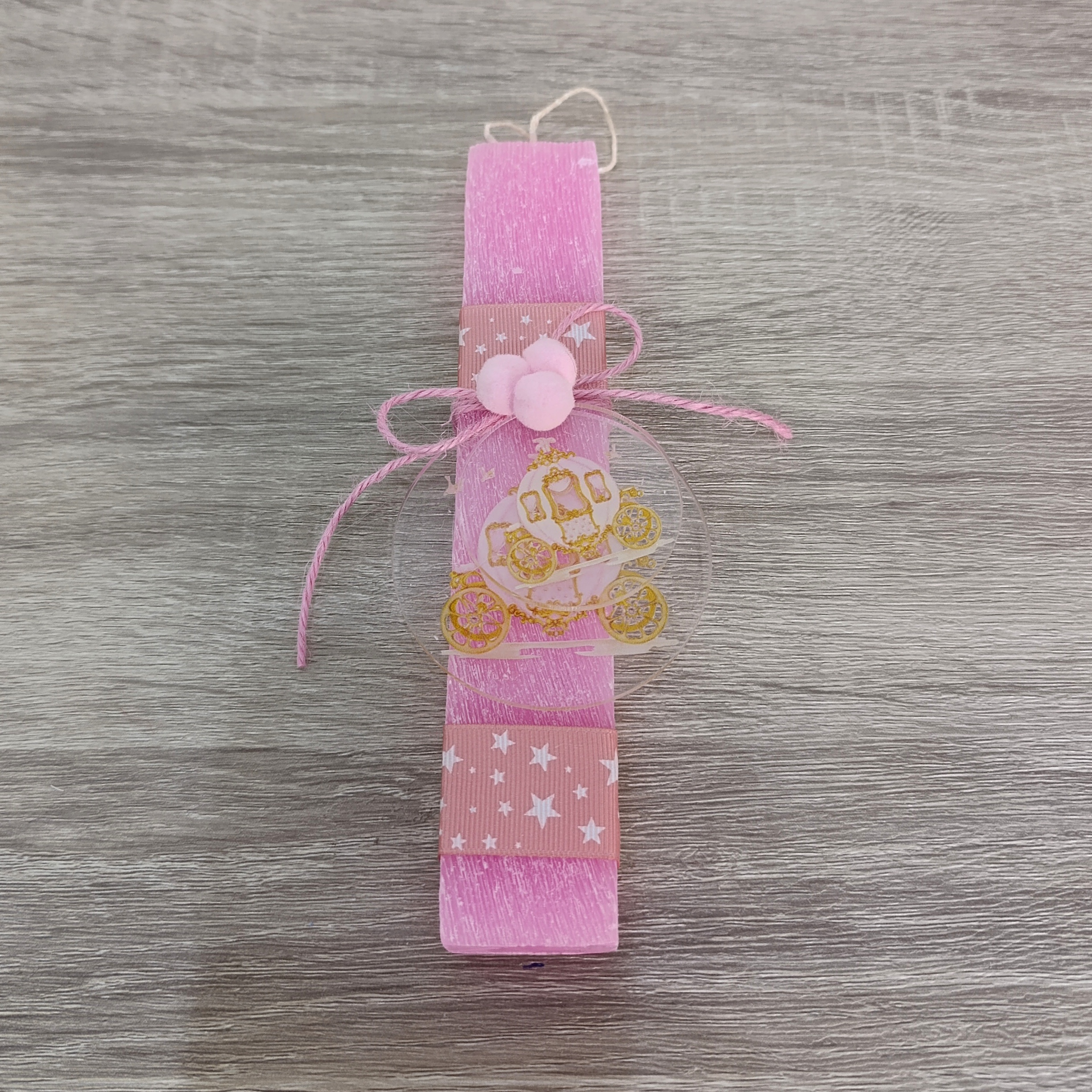 Λαμπάδα παιδική αρωματική ρόζ με διακοσμητικό plexi άμαξα