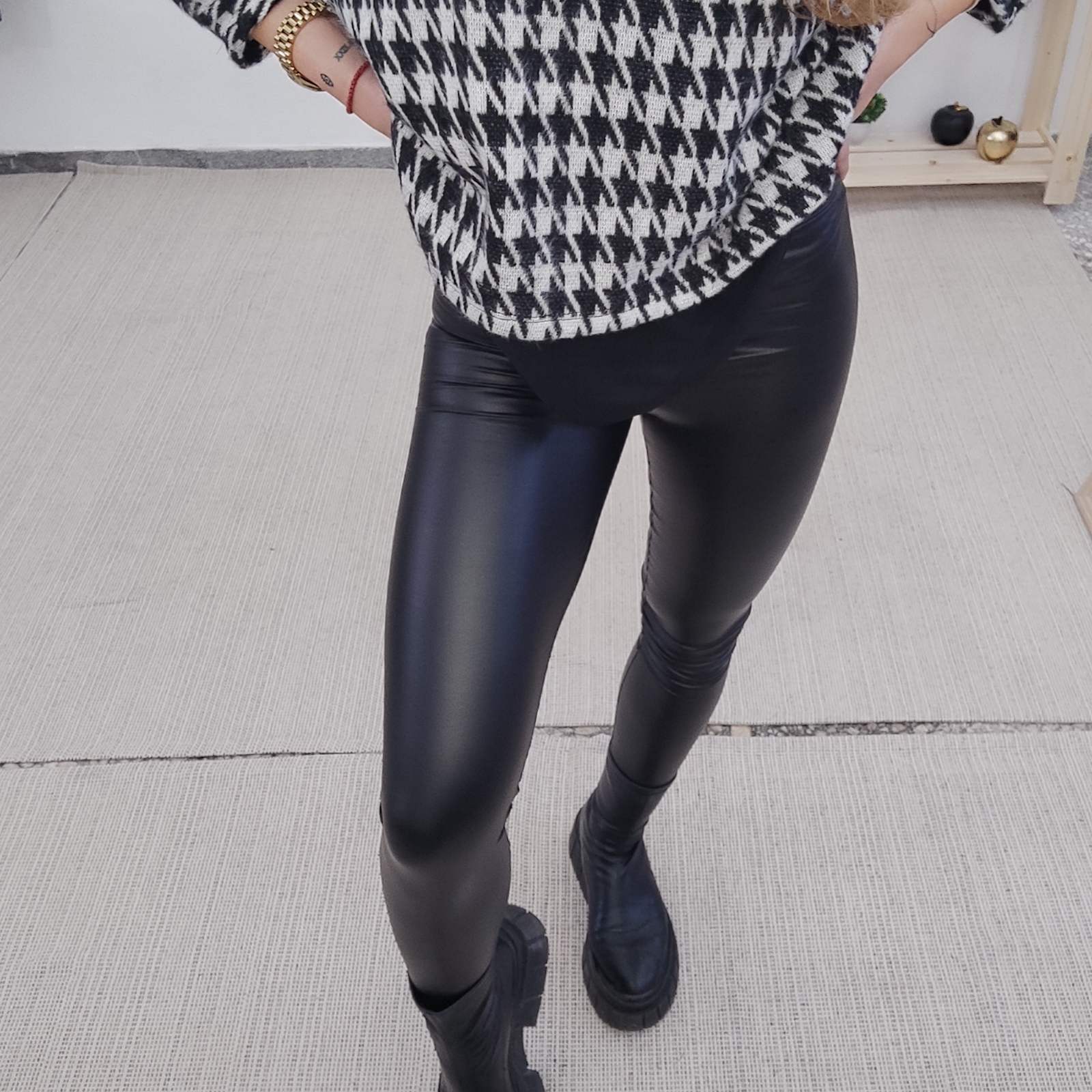 Μαύρο δερμάτινο κολάν με υπέροχη εφαρμογή.