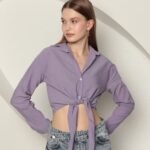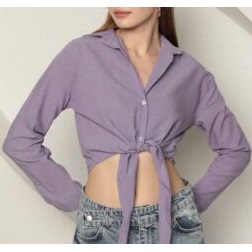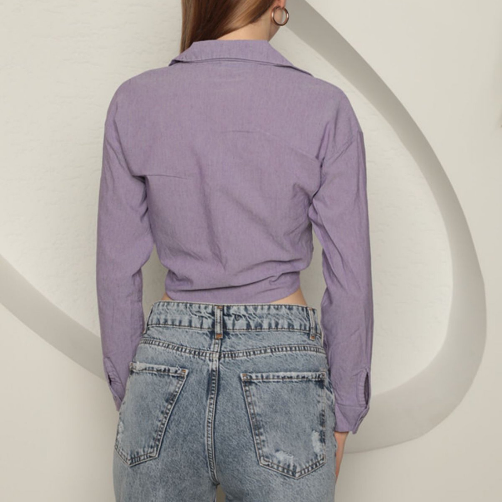 Πουκαμισάκι crop με δέσιμο λιλά χρώμα.