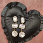Ατσάλινο σκουλαρίκι κρεμαστό τριπλό strass σε 2 αποχρώσεις χρυσό και ασημί.