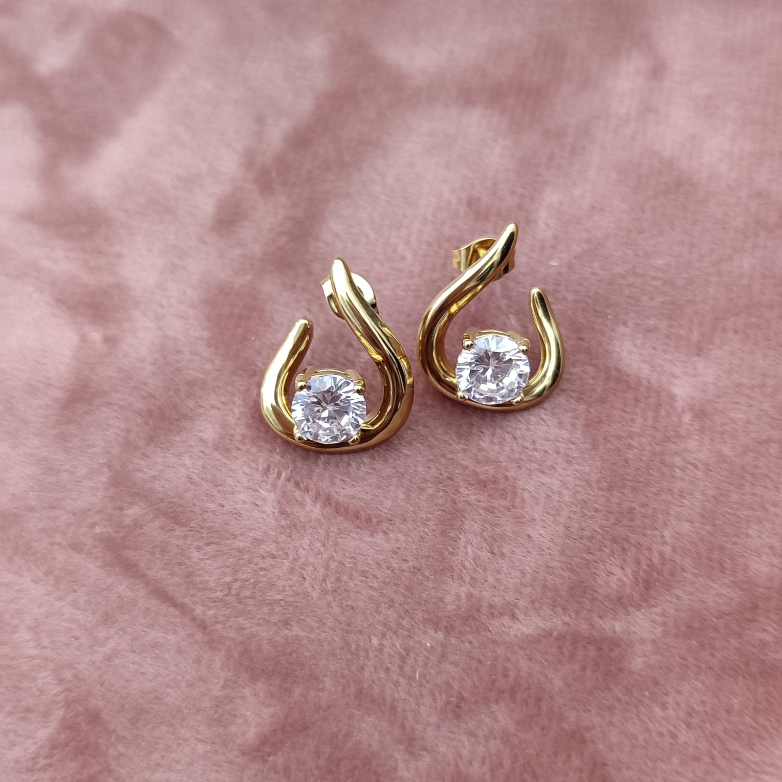Ατσάλινο σκουλαρίκι με strass σε δυο αποχρώσεις χρυσό και ασημί.