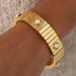 Αυτό το βραχιόλι συνδυάζει την κομψότητα του χρυσού με την αριστοκρατική ομορφιά των πέρλων, δημιουργώντας έναν μοναδικό και διαχρονικό συνδυασμό.