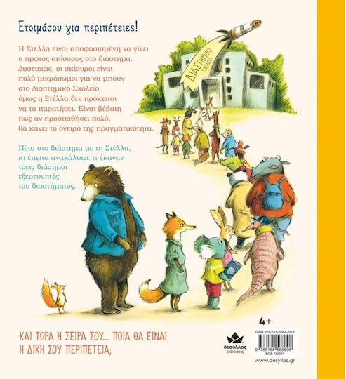 Δυστυχώς, οι σκίουροι είναι πολύ μικρόσωμοι για να μπουν στο Διαστημικό Σχολείο, όμως η Στέλλα δεν πρόκειται να τα παρατήσει. Είναι βέβαιη πως αν προσπαθήσει πολύ, θα κάνει το όνειρό της πραγματικότητα.